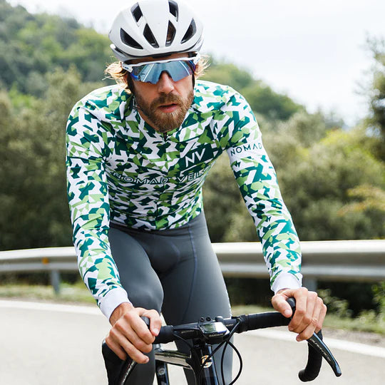 Groen Сamouflage Aero wielershirt met lange mouwen voor lange beklimmingen - Сamouflage Jersey